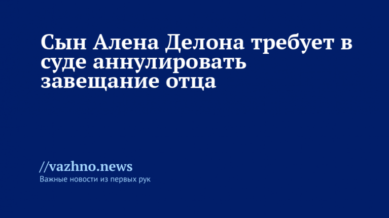 Адвокат наследника утверждает, что в момент составления завещания в ноябре 2022 года Ален Делон «потерял остаточную рассудительность». В связи с этим сын просит признать документ недействительным.