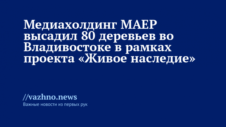 «Живое наследие» — это федеральный проект медиахолдинга МАЕР, направленный на сохранение исторической памяти и укрепление экологического состояния России через посадку мемориальных аллей в городах. В день открытия Восточного экономического форума Аллея Памяти будет создана на острове Русский возле стен Дальневосточного федерального университета.