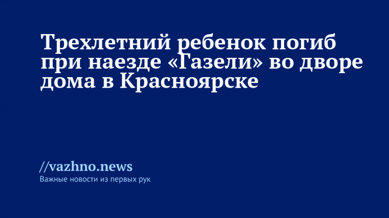В Красноярске трехлетний ребенок погиб под колесами «Газели» во дворе