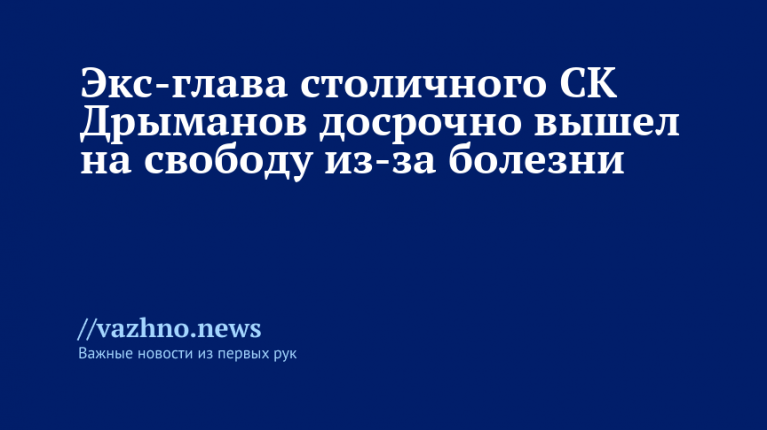 Александр Дрыманов, ранее занимавший пост руководителя столичного главного управления Следственного комитета (СК) России, осужденный на 12 лет за получение взяток, был досрочно освобожден из колонии в Мордовии из-за проблем со здоровьем. Об этом 2 сентября сообщили в Темниковском районном суде региона «Известиям».
