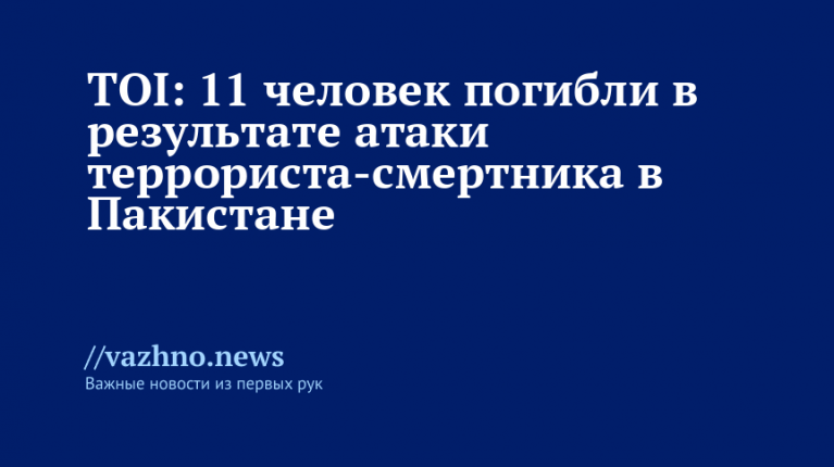 В провинции Белуджистан Пакистана в результате взрыва, устроенного террористом-смертником, погибли как минимум 11 человек, при этом около 40 получили ранения. Об этом 2 сентября сообщает издание Times Of India (TOI).