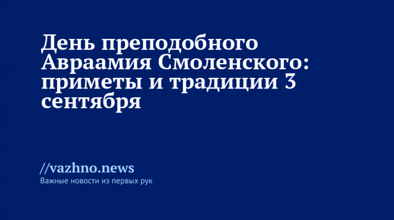 Каждый год 3 сентября православные верующие отмечают память преподобного Авраамия Смоленского — святого XII–XIII веков, прославленного как строгий проповедник покаяния и духовный наставник. Считается, что в этот день следует уделить больше внимания семье, избегать крупных расходов, сосредоточиться на домашнем уюте и делах. Строгие запреты, связанные с православным праздником, описаны в материале из «Известий».