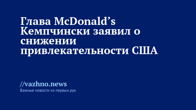 Американские бренды постепенно теряют часть своей привлекательности за пределами страны из-за изменений в восприятии США. Об этом 2 сентября в интервью CNBC рассказал глава McDonald’s Крис Кемпчински.