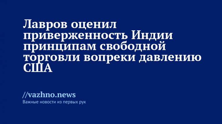 Россия отметила приверженность Индии принципам свободной торговли, несмотря на давление со стороны США. Об этом 3 сентября заявил министр иностранных дел РФ Сергей Лавров в интервью газете «Компас».