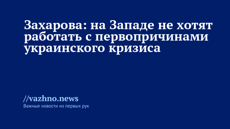 «Запад либо не готов, либо не желает, либо не способен работать с корнями кризиса», — сказала Захарова.
