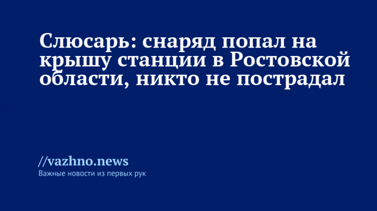 На крышу железнодорожной станции Кутейниково в Ростовской области попал неразорвавшийся снаряд Вооруженных сил Украины (ВСУ). Об этом 3 сентября сообщил исполняющий обязанности губернатора Юрий Слюсарь.