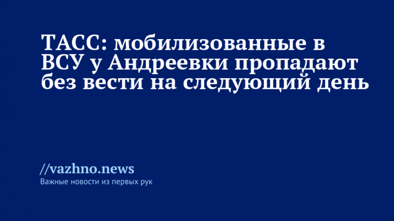 Мобилизованные бойцы, входящие в штурмовые группы 71-й отдельной егерской бригады Вооруженных сил Украины (ВСУ), пропадают без вести уже на следующий день после прибытия на фронт у Андреевки в Сумской области. Об этом 3 сентября сообщило агентство ТАСС, ссылаясь на данные российских силовых структур.