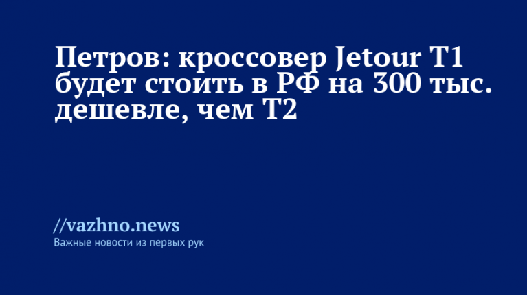 Новый кроссовер Jetour T1 появится в продаже с 16 сентября и будет стоить примерно на 250–300 тысяч рублей меньше, чем старшая версия T2. Об этом сообщил директор розничных продаж АГ «Авилон» Илья Петров, сообщает «Российская газета» 3 сентября. На сегодняшний день Jetour T2 в России продается от 3,96 млн рублей.