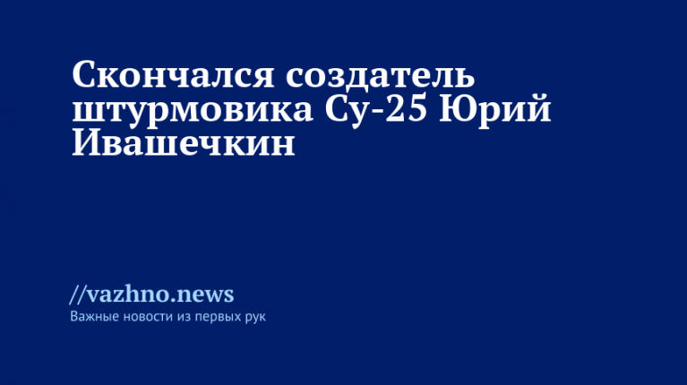 «Юрий Викторович Ивашечкин, разработчик Су-25 и первый главный конструктор Sukhoi Superjet 100, скончался на 91-м году жизни. Выражаем глубокие соболезнования его близким и родственникам», — говорится в официальном заявлении.
