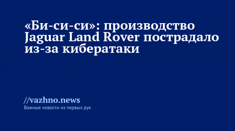 Кибератака сильно повлияла на производство автомобилей концерна Jaguar Land Rover (JLR), затронув в том числе два основных завода компании в Великобритании. Об этом сообщает телеканал «Би-си-си», ссылаясь на представителей автопроизводителя.