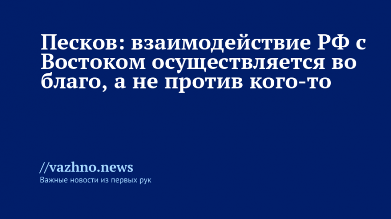 Россия сотрудничает с партнерами на Востоке в интересах своих народов, а не с целью противодействия третьим странам. Об этом 3 сентября заявил официальный представитель Кремля Дмитрий Песков, сообщает корреспондент «Известий».