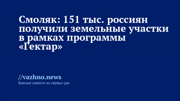 На данный момент 151 тысяча человек получили земельные участки в рамках программы «Гектар». Об этом 3 сентября рассказал директор департамента Министерства России по развитию Дальнего Востока и Арктики Григорий Смоляк.