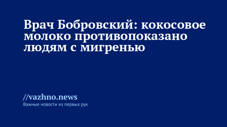 Врач Бобровский: кокосовое молоко нельзя при мигрени