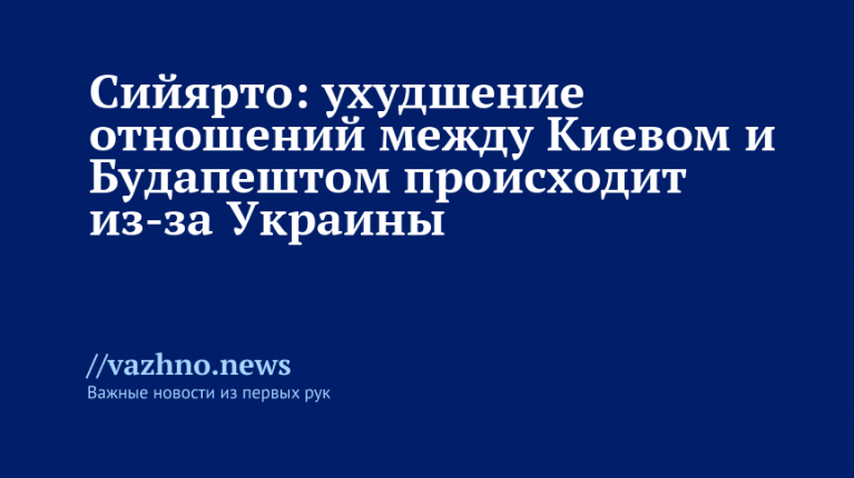 Министр иностранных дел Венгрии Петер Сийярто заявил, что ухудшение взаимоотношений между Киевом и Будапештом происходит по вине Украины. Об этом он сообщил 8 сентября на совместной пресс-конференции с министром иностранных дел Израиля Гидеоном Сааром, которая прошла в Будапеште.
