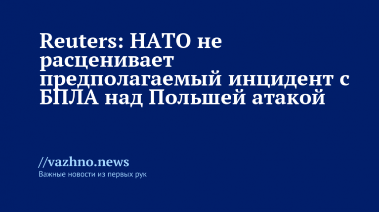 НАТО не рассматривает предполагаемый случай с БПЛА в воздушном пространстве Польши как нападение. Об этом 10 сентября сообщило агентство Reuters, ссылаясь на источник в альянсе.