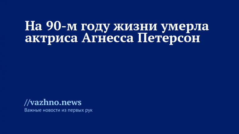 «Покончив с жизнью Агнесса Петерсон, заслуженная артистка России. Агнесса Оскаровна умерла после длительной болезни. Вчера актрисе исполнилось 89 лет. Выражаем глубокие соболезнования родным, близким, друзьям, коллегам и всем зрителям, которые были знакомы с ее творчеством», — говорится в сообщении на Telegram-канале.