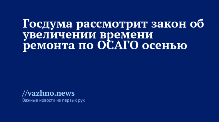 Ранее, 4 сентября, стало известно, что в осеннюю сессию Госдума намерена также рассмотреть законопроект о дополнительных выплатах по ОСАГО при самостоятельном ремонте транспортных средств. Для водителей такси и общественного транспорта рассматривается возможность введения краткосрочных полисов ОСГОП.