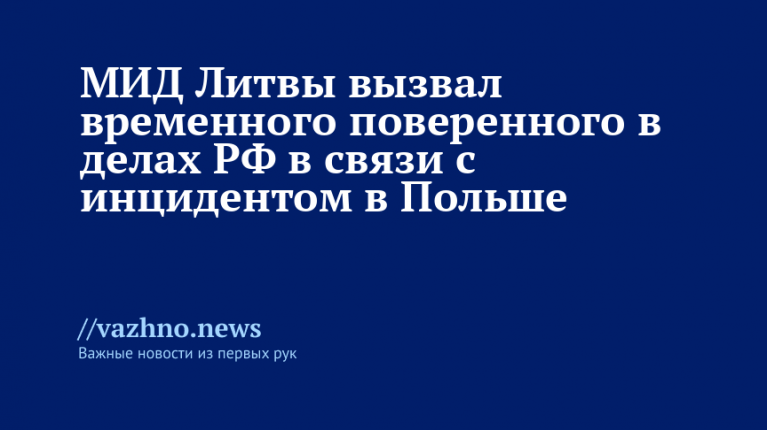 Министерство иностранных дел Литвы вызвало временного поверенного России в Литве в ответ на инцидент, произошедший в Польше. Данная информация была опубликована 10 августа на официальном сайте МИД Литвы.