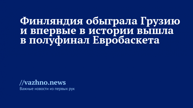Команда Финляндии одержала победу над сборной Грузии в четвертьфинальном поединке чемпионата Европы по баскетболу, что впервые в истории принесло финнам выход в полуфинал данного турнира. Матч состоялся 10 сентября.