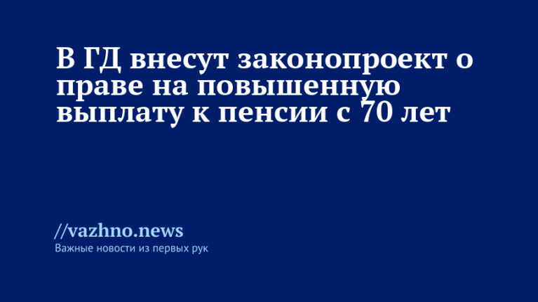 В ГД внесут закон о повышенной выплате к пенсии с 70 лет