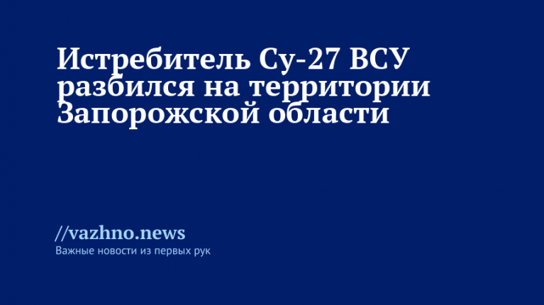 Многофункциональный истребитель Су-27 Вооруженных сил Украины (ВСУ) потерпел крушение на территории Запорожской области, находящейся под контролем киевского режима. Об этом 11 сентября проинформировала 39-я украинская бригада тактической авиации.