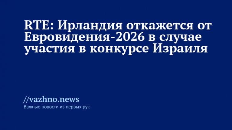 Отмечается, что Израиль выступает в конкурсе от Европейского вещательного союза (EBU), который обеспечивает финансирование и организацию мероприятия. Итоговое решение по участию Ирландии в Евровидении-2026 в Вене будет принято после того, как EBU примет решение относительно допуска Израиля к конкурсу.
