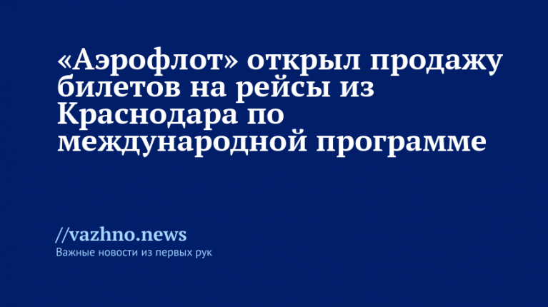 «Аэрофлот» начал продажу билетов на прямые международные рейсы из Краснодара. Об этом 12 сентября сообщили через Telegram-канал авиакомпании.