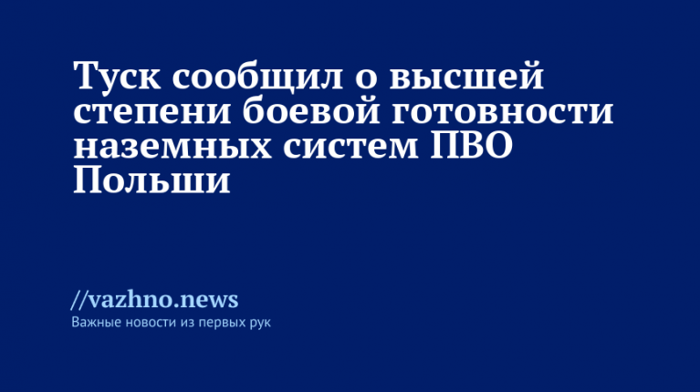 Премьер-министр Польши Дональд Туск 13 сентября объявил, что наземные противовоздушные системы обороны страны приведены в максимальную боевую готовность.