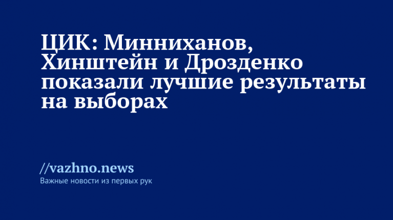 Согласно данным Центральной избирательной комиссии, действующий руководитель Татарстана Рустам Минниханов, при обработке 99,2% бюллетеней, набирает 88,12% голосов. Временно исполняющий обязанности губернатора Курской области Александр Хинштейн набирает 86,92%, губернатор Ленинградской области Александр Дрозденко — 84,21%, а временно исполняющий обязанности Оренбургской области Евгений Солнцев — 83,85% голосов.