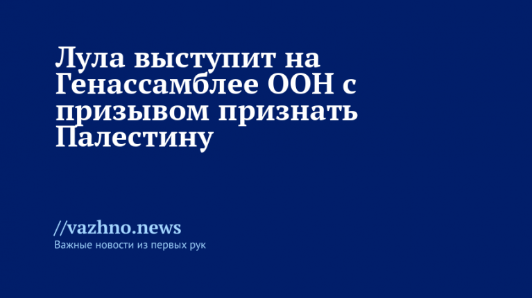 Президент Бразилии Луис Инасиу Лула да Силва выступит 23 сентября на церемонии открытия 80-й сессии Генеральной Ассамблеи ООН, проходящей в Нью-Йорке. В своем выступлении он планирует обсудить темы Палестины, вопросов демократии и проблем климатического кризиса, как сообщило издание AgenciaBrasil 15 сентября.