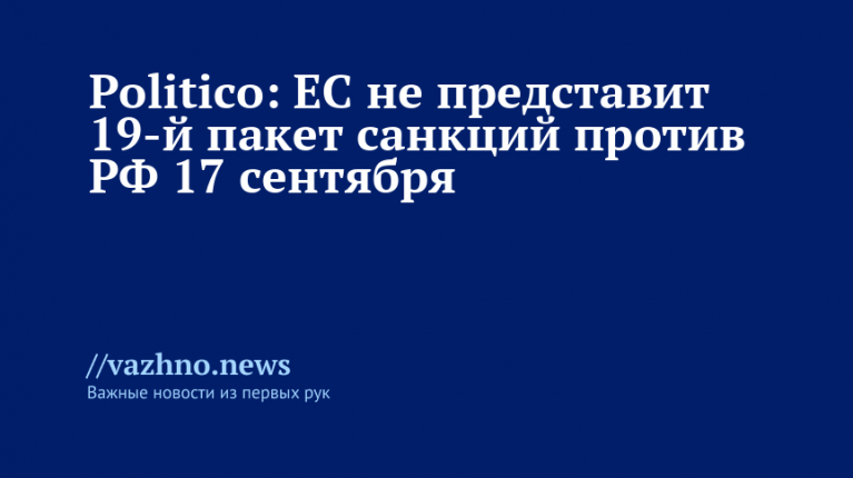 Politico: ЕС не вводит 19-й пакет санкций против РФ 17 сентября