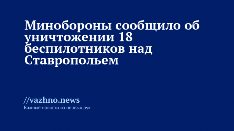 Большинство беспилотников — 30 — были уничтожены в воздухе над Курской областью. Также 18 БПЛА сбили над Ставропольским краем, 11 — над Ростовской, 10 — над Брянской, пять — над Тульской, четыре — над Рязанской областями, три — над Крымом, по два — над Волгоградской и Воронежской областями, а по одному — над Нижегородской областью и Черным морем.