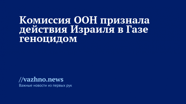 Комиссия ООН, занимающаяся расследованием событий на оккупированных палестинских территориях и в Израиле, признала действия Тель-Авива в секторе Газа как геноцид. Об этом рассказал глава комиссии Нави Пиллай в интервью телеканалу Al-Jazeera.