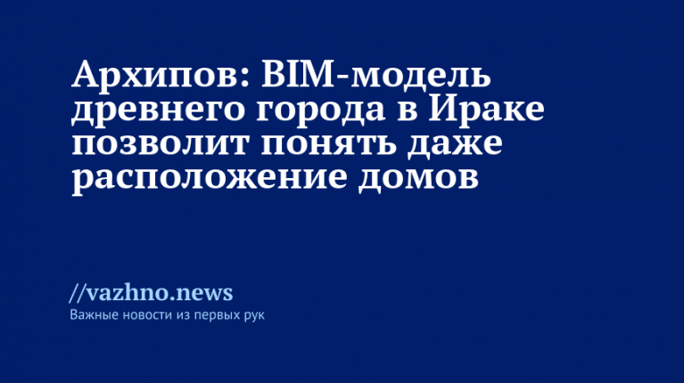 Российские археологи начали выполнение уникального проекта, в рамках которого будет создана BIM-модель древнего города, расположенного в южной части Ирака. Об этом 16 сентября сообщил замдиректора Института классического Востока и античности, доцент и старший научный сотрудник факультета гуманитарных наук НИУ ВШЭ Илья Архипов во время пресс-конференции в пресс-центре МИЦ «Известия». Тема встречи — «BIM-модель древнего города в Ираке: первый в мире проект российских ученых».