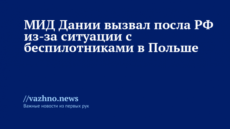 Министерство иностранных дел Дании пригласило посла России Владимира Барбина для разъяснений по поводу инцидента с беспилотниками на территории Польши. Как стало известно 16 сентября из Telegram-канала российского посольства, данный шаг был вызван происходящими событиями.