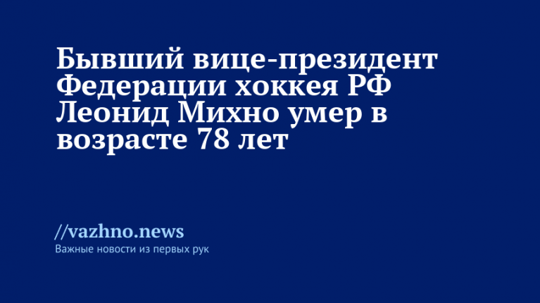 Умер бывший вице-президент Федерации хоккея РФ Леонид Михно, 78 лет