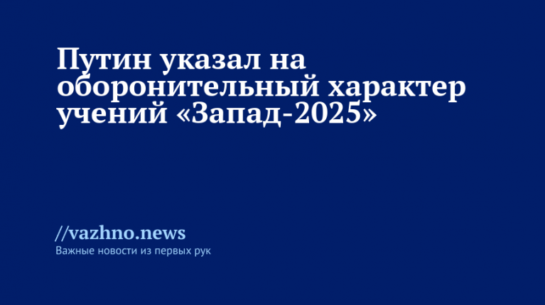 Президент России Владимир Путин 16 сентября в ходе рабочей поездки в Приволжский федеральный округ заявил, что российско-белорусские учения «Запад-2025» имеют оборонительный характер.
