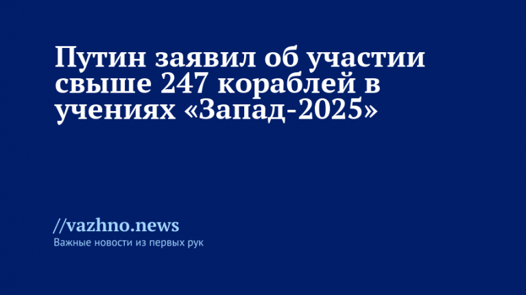 В маневрах «Запад-2025» задействованы более 247 надводных и подводных кораблей вместе с судами обеспечения. Об этом 16 сентября сообщил президент России Владимир Путин, который на полигоне «Мулино» в Нижегородской области наблюдал за основным этапом учений.