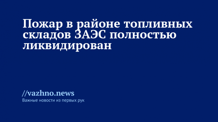 Пожар возле топливных складов Запорожской АЭС полностью ликвидирован без угрозы взрыва.