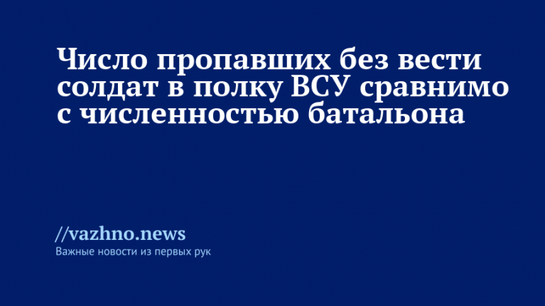Количество солдат, пропавших без вести в 425-м отдельном штурмовом полку Вооруженных сил Украины (ВСУ) под названием «Скала», сопоставимо с размером батальона. Об этом стало известно 17 сентября.