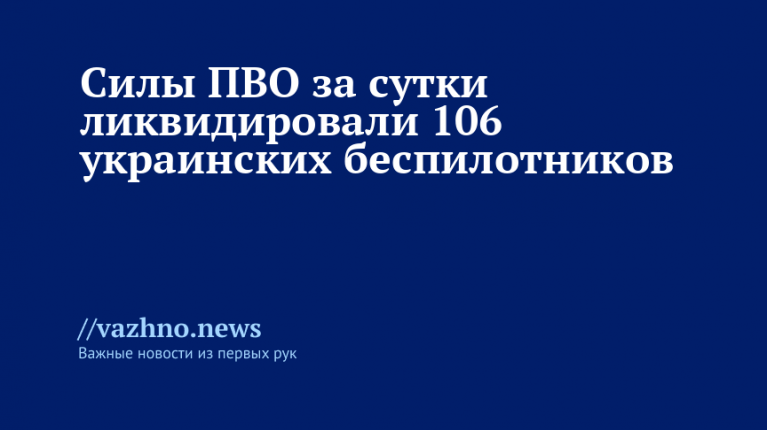 В сообщении в Telegram-канале ведомства говорится: «С помощью средств противовоздушной обороны сбиты 106 беспилотных летательных аппаратов самолетного типа».