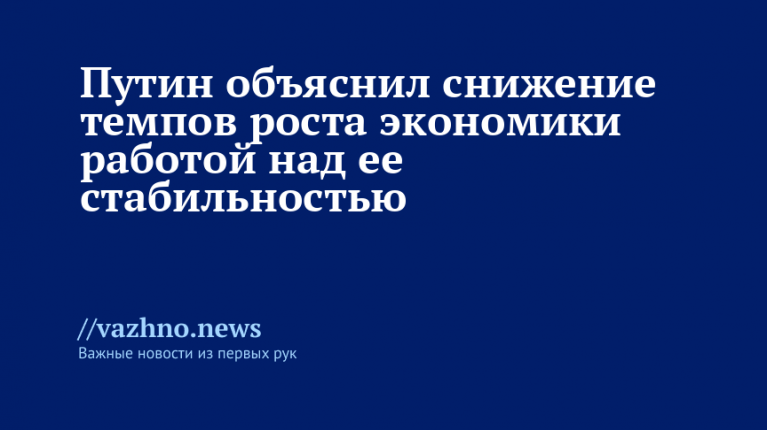 Уменьшение темпов экономического роста в России является целенаправленной мерой для обеспечения макроэкономической стабильности страны. Об этом 18 сентября заявил президент РФ Владимир Путин во время встречи с лидерами парламентских фракций в Государственной думе.