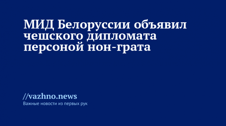 «В качестве меры ответа объявлен персоной нон-грата представитель Чехии, которому необходимо покинуть территорию Белоруссии в течение 72 часов», — говорится на официальном сайте МИДа республики.