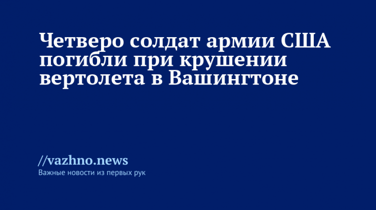 Четыре военнослужащих армии США погибли в результате аварии вертолета MH-60 Black Hawk неподалеку от объединенной базы Льюис-Маккорд в штате Вашингтон. Происшествие случилось во время стандартной учебной операции к западу от базы, как сообщили 19 сентября представители агентства Associated Press.