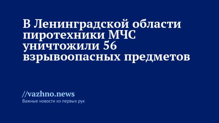 Пиротехники МЧС уничтожили 56 взрывоопасных предметов в Ленобласти
