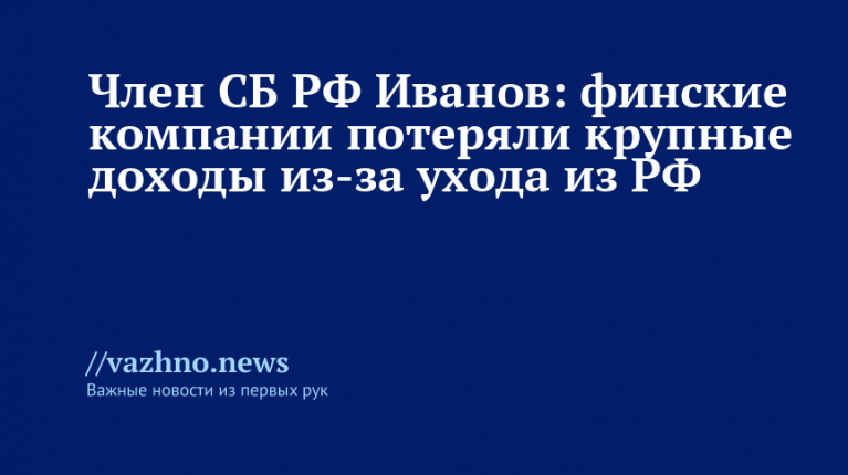 Многомиллиардные прибыли финских фирм в России исчезли после разрыва экономических связей между двумя государствами. Об этом 21 сентября сообщил спецпредставитель президента РФ по вопросам охраны природы, экологии и транспорта Сергей Иванов.