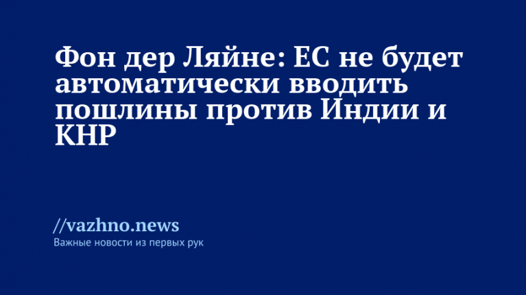 Фон дер Ляйне: ЕС не введет автоматически пошлины против Индии и Китая