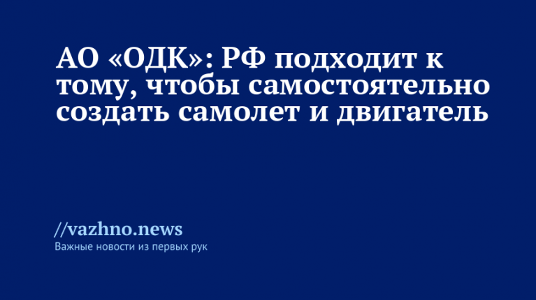 АО «ОДК»: Россия близка к созданию собственного самолета и двигателя
