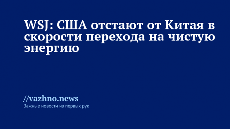 WSJ: США уступают Китаю в темпах перехода на чистую энергию