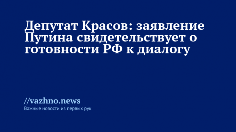 Заявление президента России Владимира Путина о том, что страна после 5 февраля 2026 года планирует в течение следующего года продолжать соблюдать ограничения из Договора о сокращении стратегических наступательных вооружений (ДСНВ), отражает готовность России вести диалог. Об этом 22 сентября сообщил «Известиям» первый заместитель председателя комитета Государственной думы по обороне, член фракции «Единая Россия» Андрей Красов.